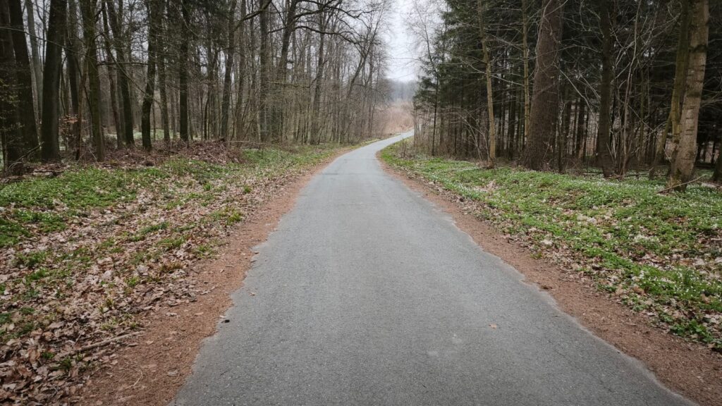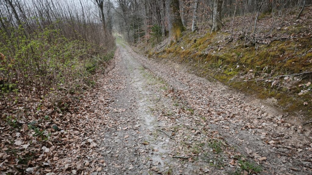 Auf den ersten 10 km geht es gleich mal 200 Höhenmeter bergauf und danach führt der Weg von der Hauptstrasse auf eine wunderschöne kleine Waldstrasse.