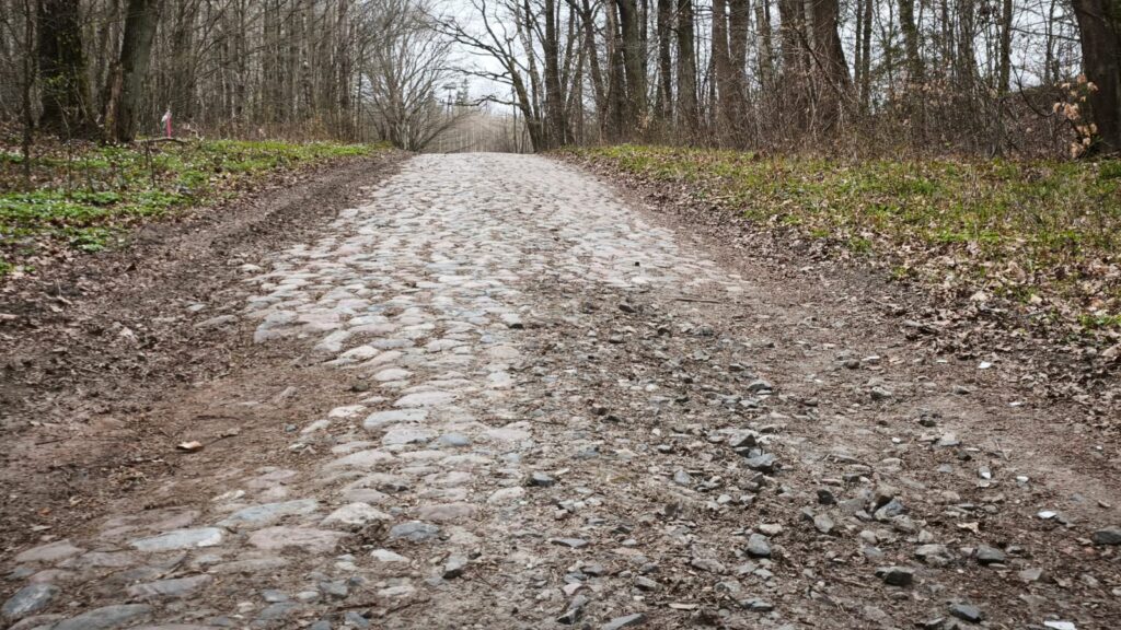 Weiter geht die wilde Fahrt über Plattenwege, danach schwarzer Erde, über alte zerfallende Pflastersteine bis Wald- und Wiesenwege.