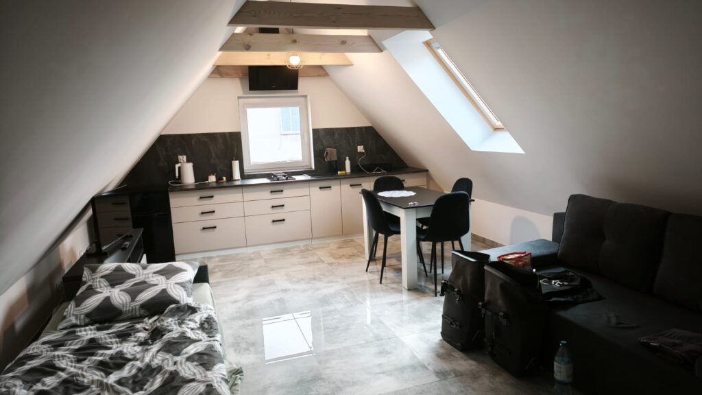 Meine Unterkunft im Zentrum ist eine edle Dachwohnung, wo ich zuerst einmal für 15 Minuten eine warme Dusche geniesse um mich wieder mal richtig aufzuheizen…danach kommt der gemütliche Teil und gute Nacht.
