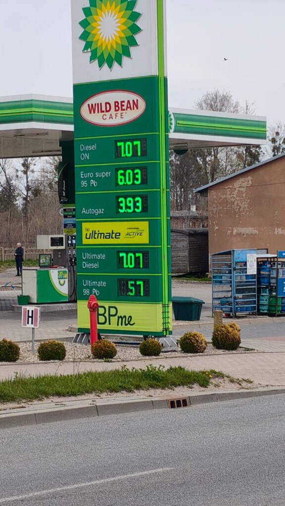 An der Tankstelle einmal einen Blick auf die Benzinpreise. Zum Rechnen, für einen Franken gibt es 4,6 Polnische Zloty. Warum zahlen wir so viel????