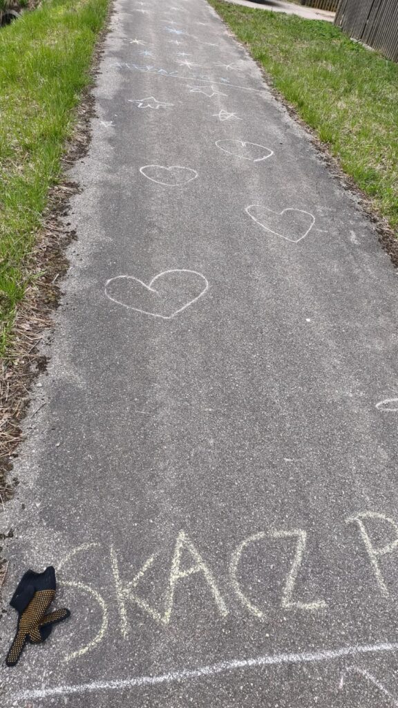 Diese Zeichnungen auf dem Bikeweg haben mich gefreut und auch ein wenig nachdenklich gemacht.