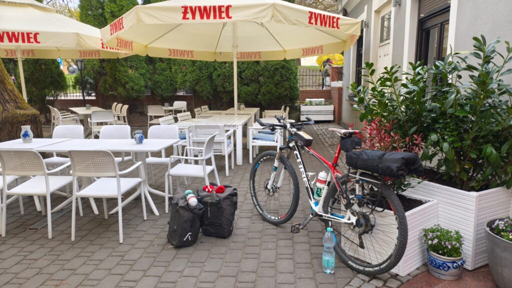 Im Biergarten alles anschnallen und dann geht's wieder von neuem los.