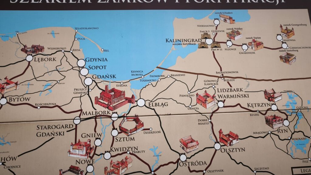 Am Stadtrand finde ich diese schöne Tafel, die genau meinen Weg von Lebork nach Danzig und später nach Kaliningrad aufzeichnet.