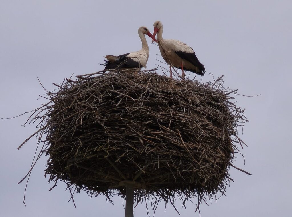 Jedem Dorf sein Storchennest.. hier zeigt sich das Pärchen wie sie Freude aneinander haben.